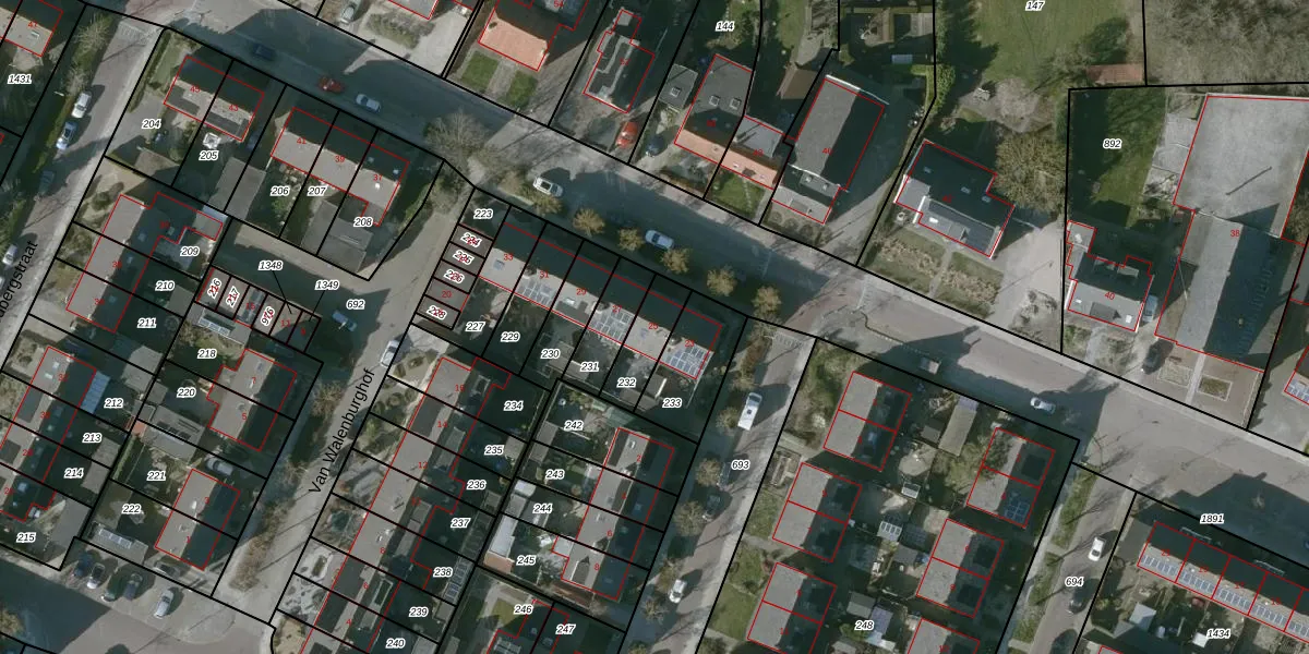 Gebruik de zoekbalk of klik op een perceel voor informatie over de adressen binnen dit perceel.