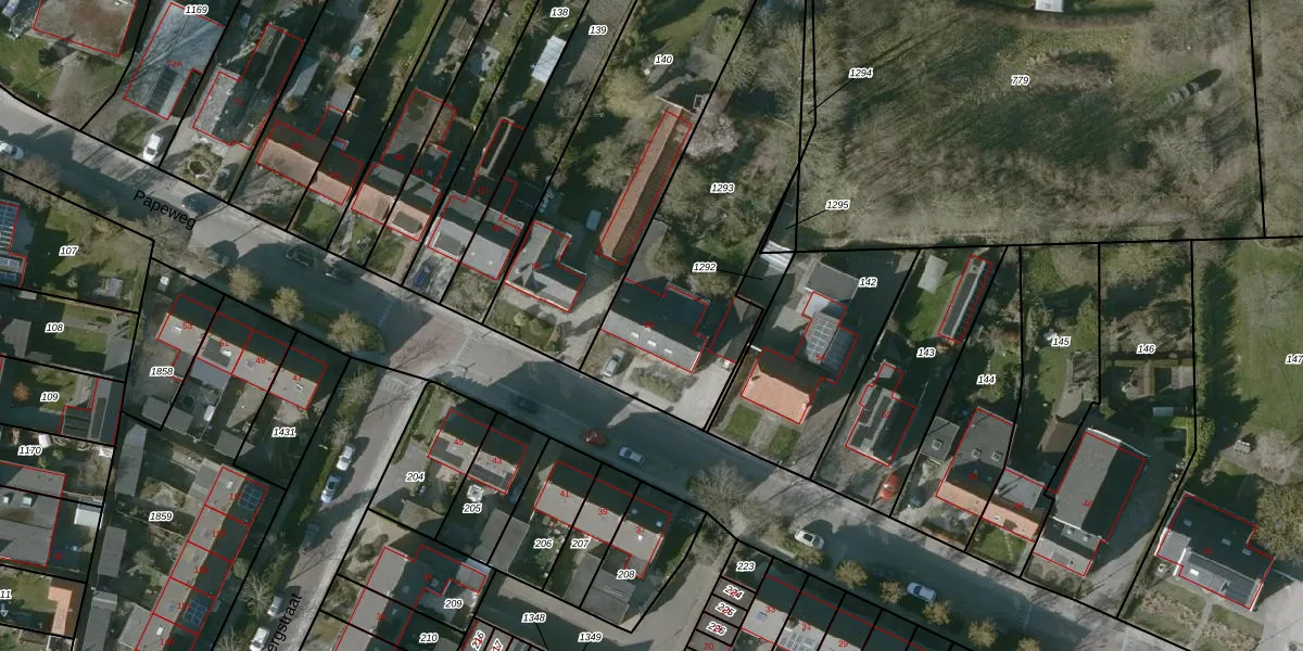 Het perceel waarop Papeweg 56 staat heeft een oppervlakte van 1160 m². Dit is een zeer groot perceel. De perceeloppervlakte wordt geregistreerd door het Kadaster. Gedetailleerde informatie over de maten van dit perceel kunt u vinden in het rapport Kadastrale kaart met maatvoering van Papeweg 56.