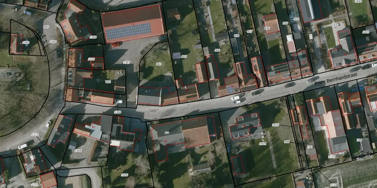 Het perceel waarop Prins Bernhardstraat 66 staat heeft een oppervlakte van 945 m². Dit is een groot perceel. De perceeloppervlakte wordt geregistreerd door het Kadaster. Gedetailleerde informatie over de maten van dit perceel kunt u vinden in het rapport Kadastrale kaart met maatvoering van Prins Bernhardstraat 66.
