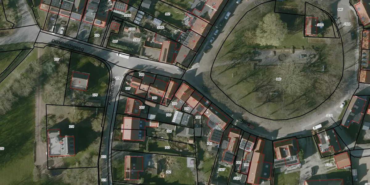 Het perceel waarop Ring 21 staat heeft een oppervlakte van 377 m². Dit is een groot perceel. De perceeloppervlakte wordt geregistreerd door het Kadaster. Gedetailleerde informatie over de maten van dit perceel kunt u vinden in het rapport Kadastrale kaart met maatvoering van Ring 21.