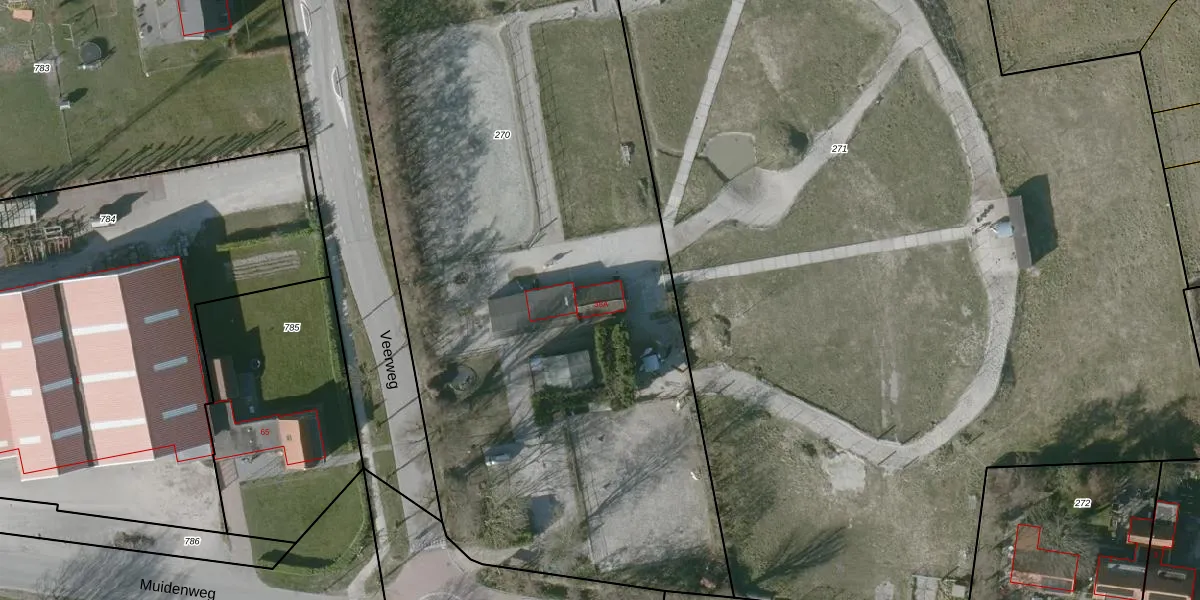 Het perceel waarop Veerweg 38-A staat heeft een oppervlakte van 6050 m². Dit is een zeer groot perceel. De perceeloppervlakte wordt geregistreerd door het Kadaster. Gedetailleerde informatie over de maten van dit perceel kunt u vinden in het rapport Kadastrale kaart met maatvoering van Veerweg 38-A.