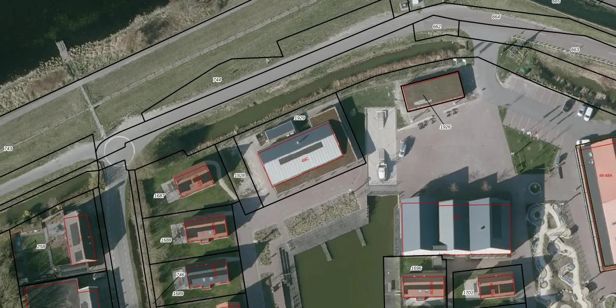 Het perceel waarop Veerweg 48-C staat heeft een oppervlakte van 904 m². Dit is een groot perceel. De perceeloppervlakte wordt geregistreerd door het Kadaster. Gedetailleerde informatie over de maten van dit perceel kunt u vinden in het rapport Kadastrale kaart met maatvoering van Veerweg 48-C.