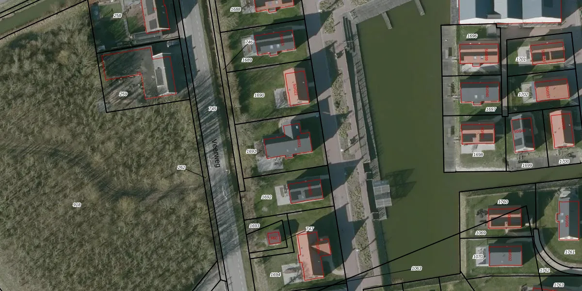 Veerweg 50-021 is gelegen op kadastraal perceel GOE00AD1691. Deze kadastrale aanduiding is uniek en wordt gebruikt door het Kadaster om eigendomsrechten en andere zakelijke rechten vast te leggen. Het perceel maakt onderdeel uit van de kadastrale gemeente Goes.