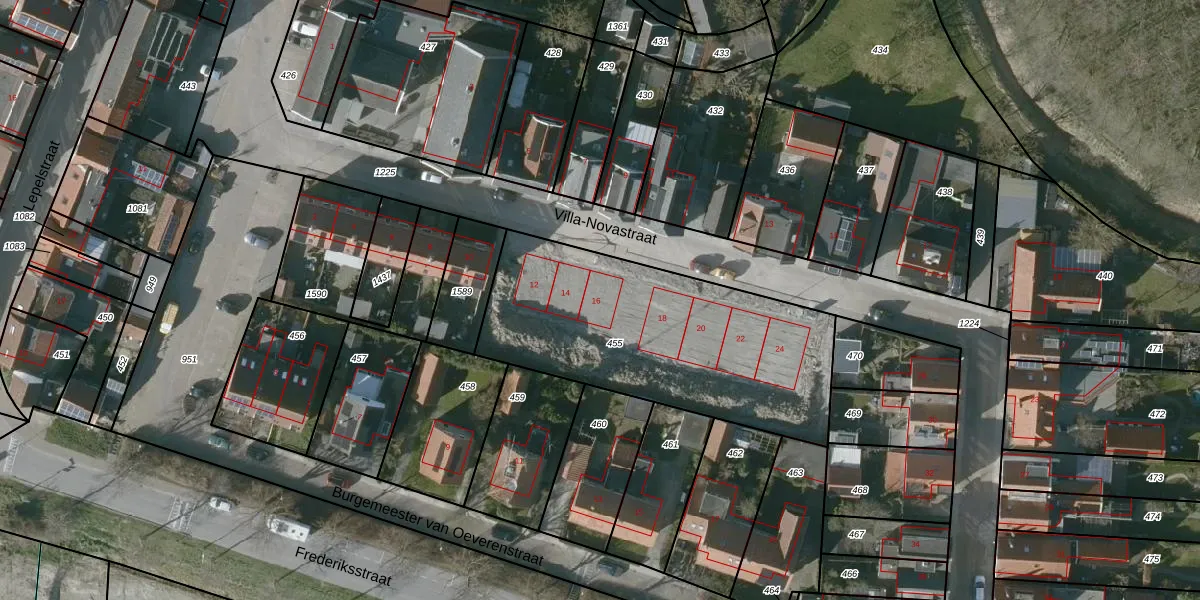 Villa-Novastraat 16 is gelegen op kadastraal perceel GOE00AD455. Deze kadastrale aanduiding is uniek en wordt gebruikt door het Kadaster om eigendomsrechten en andere zakelijke rechten vast te leggen. Het perceel maakt onderdeel uit van de kadastrale gemeente Goes.