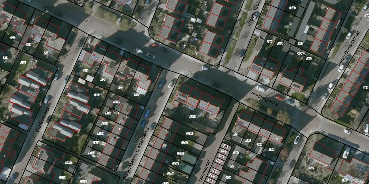 Vliedbergstraat 75 is gelegen op kadastraal perceel GOE00AD1245. Deze kadastrale aanduiding is uniek en wordt gebruikt door het Kadaster om eigendomsrechten en andere zakelijke rechten vast te leggen. Het perceel maakt onderdeel uit van de kadastrale gemeente Goes.