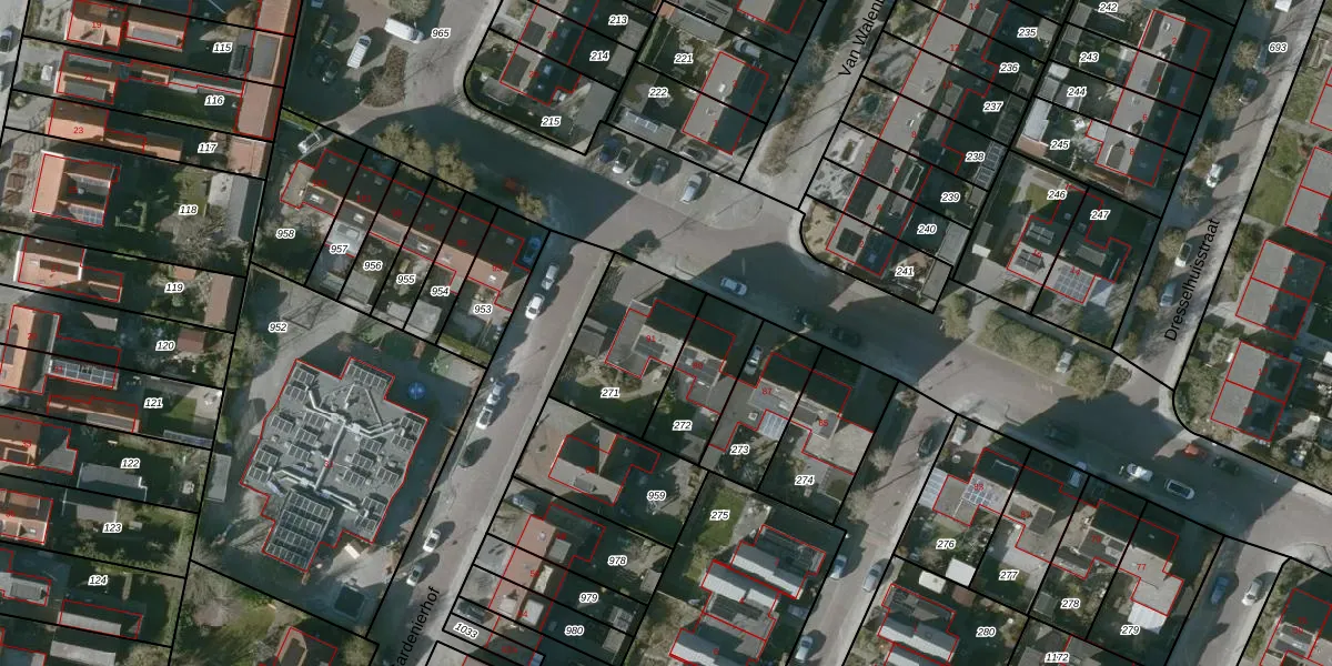 Gebruik de zoekbalk of klik op een perceel voor informatie over de adressen binnen dit perceel.