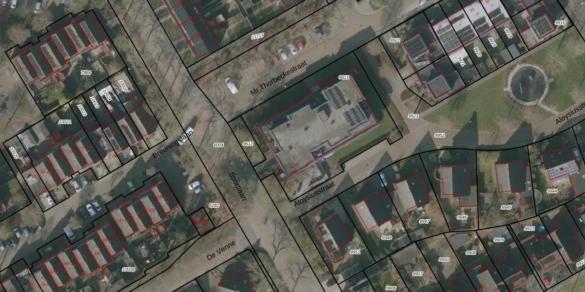Het perceel waarop Aloysiusstraat 30 staat heeft een oppervlakte van 1490 m². Dit is een zeer groot perceel. De perceeloppervlakte wordt geregistreerd door het Kadaster. Gedetailleerde informatie over de maten van dit perceel kunt u vinden in het rapport Kadastrale kaart met maatvoering van Aloysiusstraat 30.