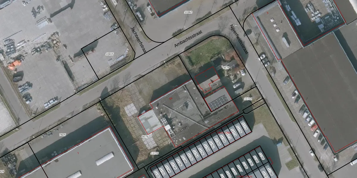 Het perceel waarop Ambachtsstraat 5-A staat heeft een oppervlakte van 2552 m². Dit is een zeer groot perceel. De perceeloppervlakte wordt geregistreerd door het Kadaster. Gedetailleerde informatie over de maten van dit perceel kunt u vinden in het rapport Kadastrale kaart met maatvoering van Ambachtsstraat 5-A.