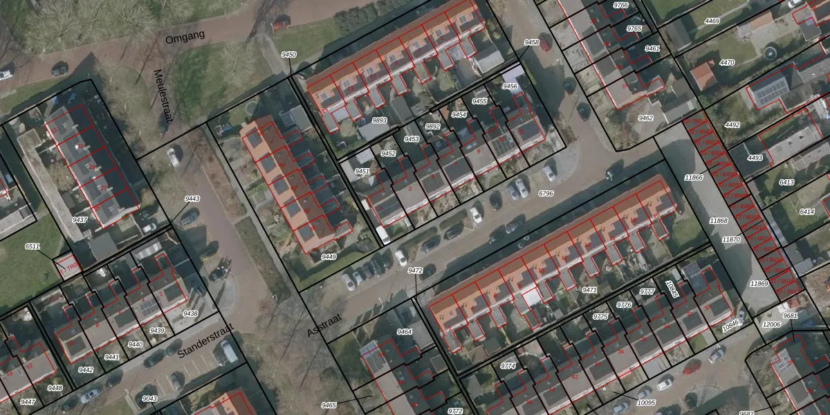 Gebruik de zoekbalk of klik op een perceel voor informatie over de adressen binnen dit perceel.
