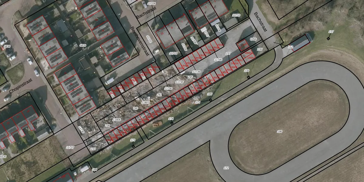 Bachstraat 1-B016 is gelegen op kadastraal perceel WVG00N241. Deze kadastrale aanduiding is uniek en wordt gebruikt door het Kadaster om eigendomsrechten en andere zakelijke rechten vast te leggen. Het perceel maakt onderdeel uit van de kadastrale gemeente Wolvega.