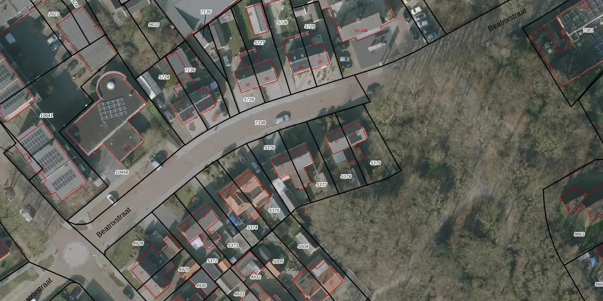 Het perceel waarop Beatrixstraat 25 staat heeft een oppervlakte van 257 m². Dit is een middelgroot perceel. De perceeloppervlakte wordt geregistreerd door het Kadaster. Gedetailleerde informatie over de maten van dit perceel kunt u vinden in het rapport Kadastrale kaart met maatvoering van Beatrixstraat 25.