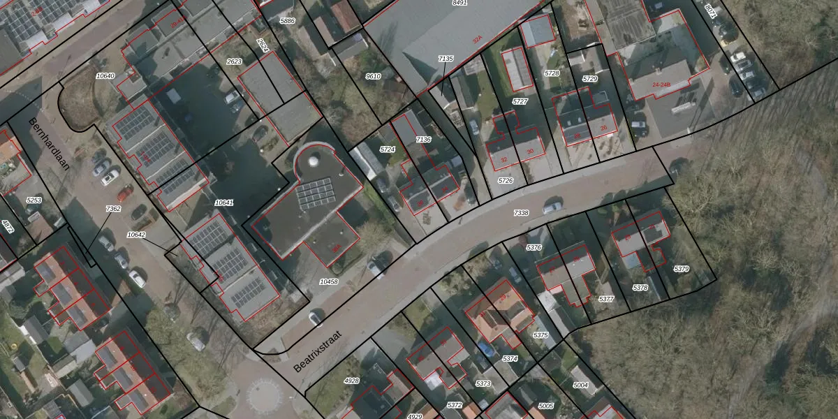 Gebruik de zoekbalk of klik op een perceel voor informatie over de adressen binnen dit perceel.