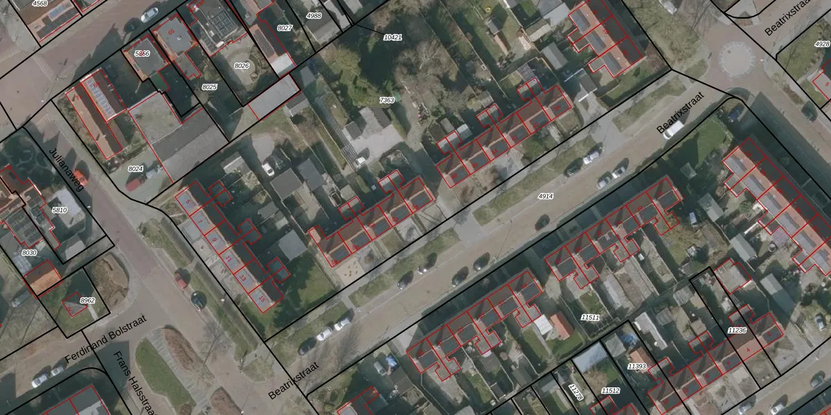 Het perceel waarop Beatrixstraat 50 staat heeft een oppervlakte van 5885 m². Dit is een zeer groot perceel. De perceeloppervlakte wordt geregistreerd door het Kadaster. Gedetailleerde informatie over de maten van dit perceel kunt u vinden in het rapport Kadastrale kaart met maatvoering van Beatrixstraat 50.