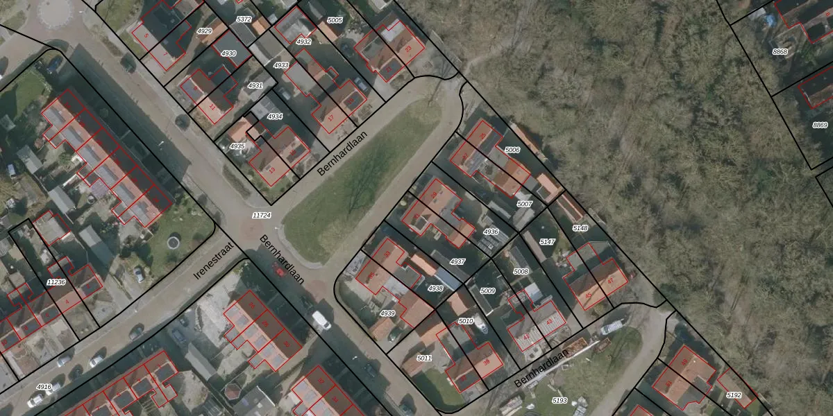 Gebruik de zoekbalk of klik op een perceel voor informatie over de adressen binnen dit perceel.