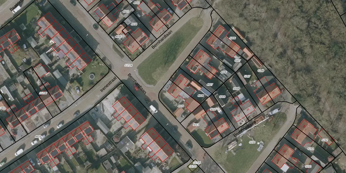 Gebruik de zoekbalk of klik op een perceel voor informatie over de adressen binnen dit perceel.