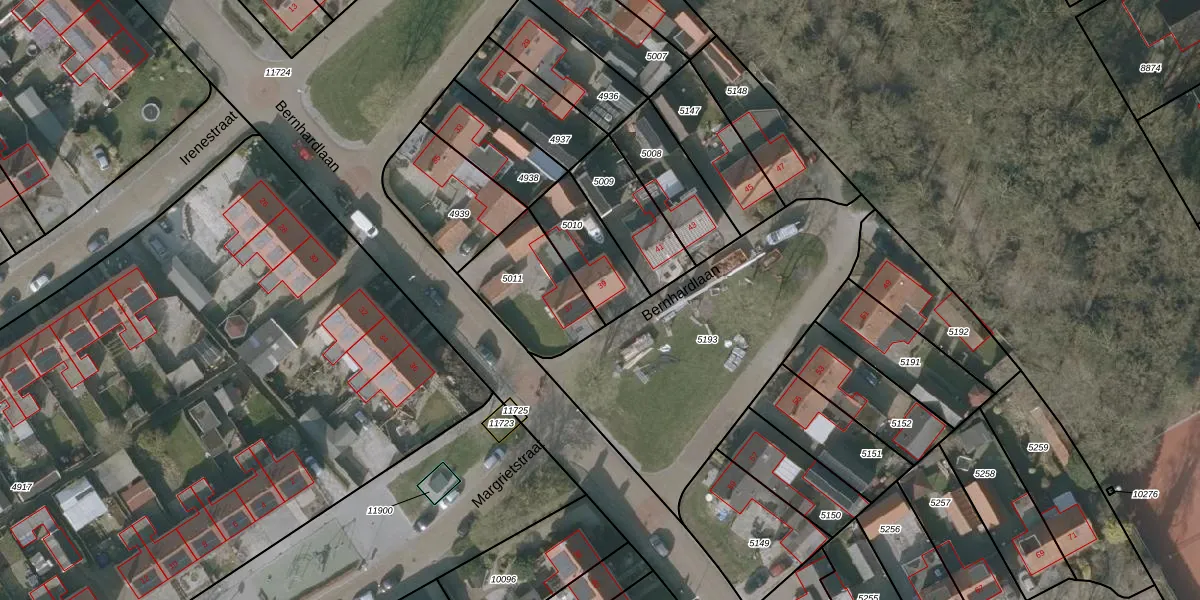 Gebruik de zoekbalk of klik op een perceel voor informatie over de adressen binnen dit perceel.