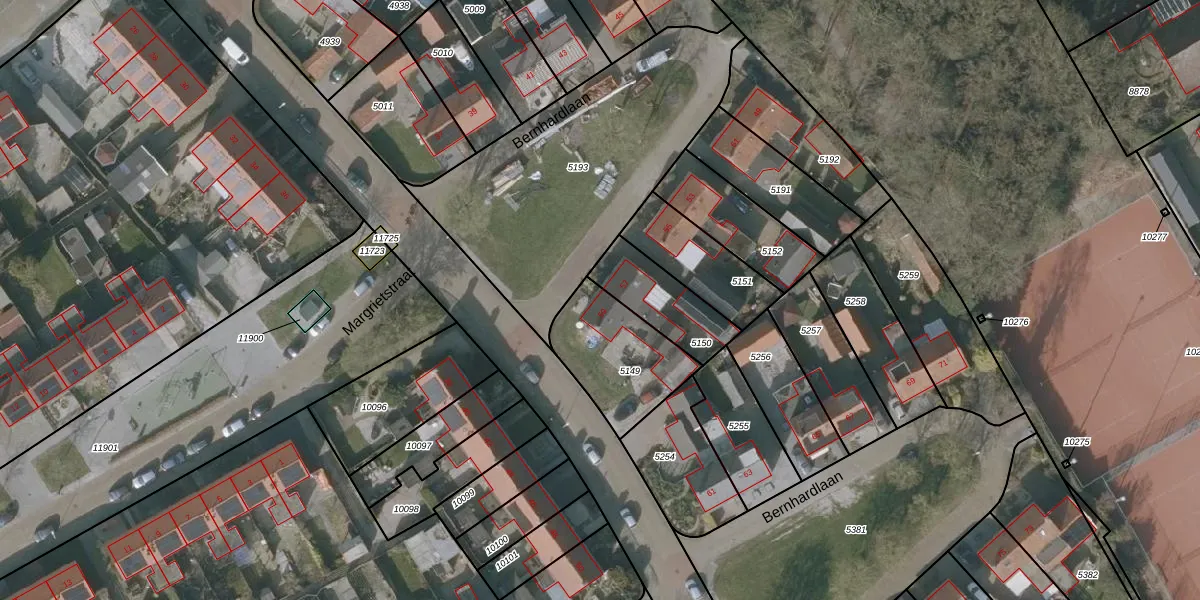 Het perceel waarop Bernhardlaan 59 staat heeft een oppervlakte van 345 m². Dit is een groot perceel. De perceeloppervlakte wordt geregistreerd door het Kadaster. Gedetailleerde informatie over de maten van dit perceel kunt u vinden in het rapport Kadastrale kaart met maatvoering van Bernhardlaan 59.