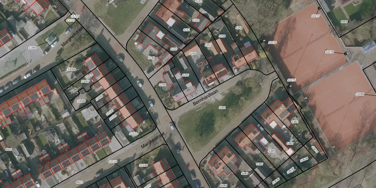 Het perceel waarop Bernhardlaan 63 staat heeft een oppervlakte van 242 m². Dit is een middelgroot perceel. De perceeloppervlakte wordt geregistreerd door het Kadaster. Gedetailleerde informatie over de maten van dit perceel kunt u vinden in het rapport Kadastrale kaart met maatvoering van Bernhardlaan 63.