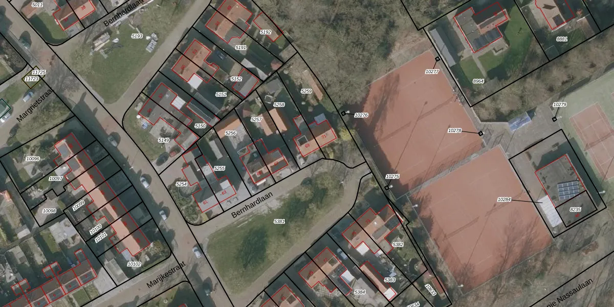 Het perceel waarop Bernhardlaan 69 staat heeft een oppervlakte van 280 m². Dit is een middelgroot perceel. De perceeloppervlakte wordt geregistreerd door het Kadaster. Gedetailleerde informatie over de maten van dit perceel kunt u vinden in het rapport Kadastrale kaart met maatvoering van Bernhardlaan 69.