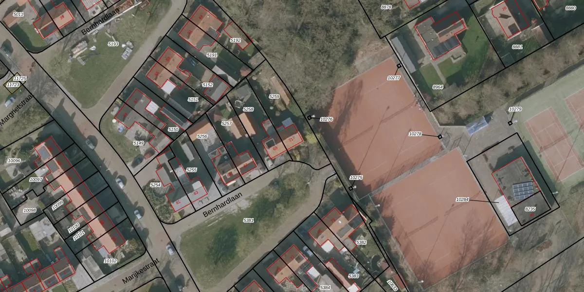 Het perceel waarop Bernhardlaan 71 staat heeft een oppervlakte van 410 m². Dit is een groot perceel. De perceeloppervlakte wordt geregistreerd door het Kadaster. Gedetailleerde informatie over de maten van dit perceel kunt u vinden in het rapport Kadastrale kaart met maatvoering van Bernhardlaan 71.