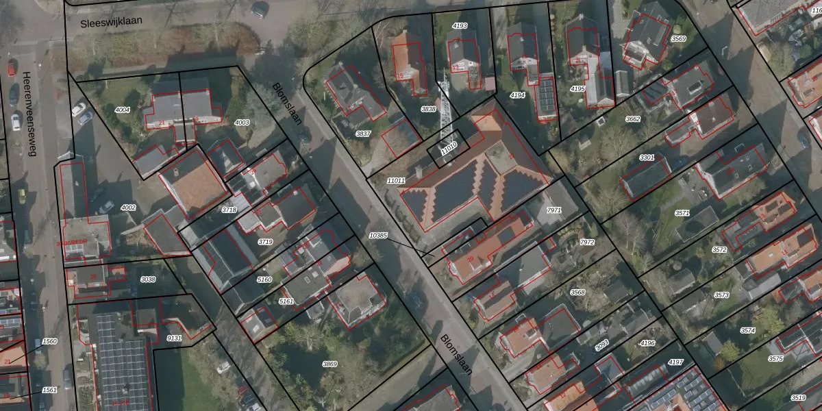 Het perceel waarop Blomslaan 22 staat heeft een oppervlakte van 913 m². Dit is een groot perceel. De perceeloppervlakte wordt geregistreerd door het Kadaster. Gedetailleerde informatie over de maten van dit perceel kunt u vinden in het rapport Kadastrale kaart met maatvoering van Blomslaan 22.