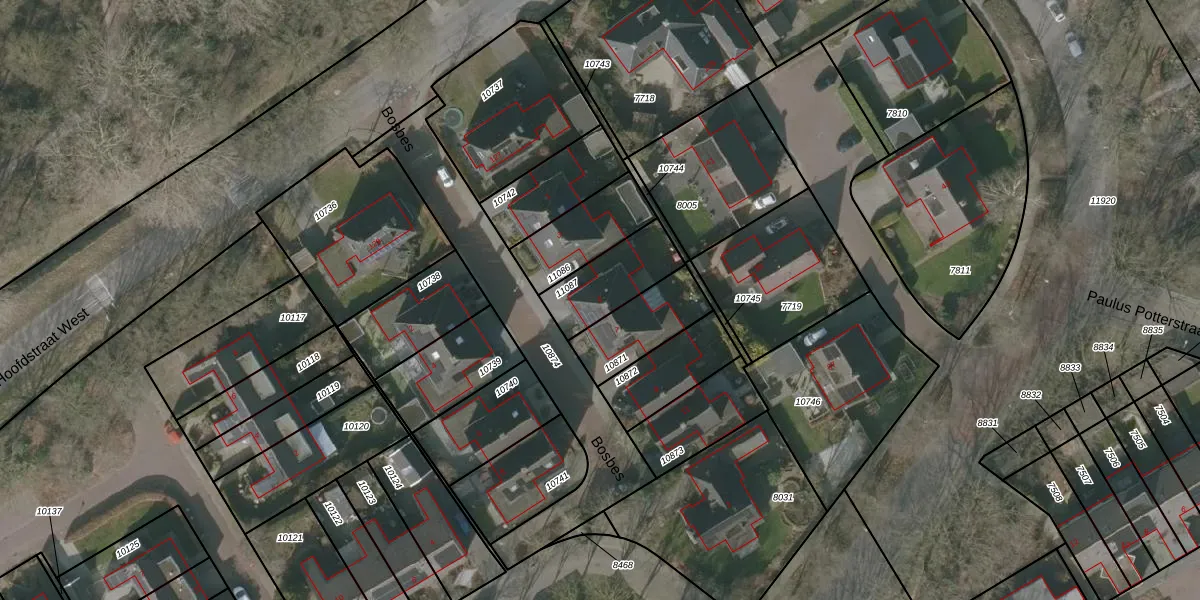 Gebruik de zoekbalk of klik op een perceel voor informatie over de adressen binnen dit perceel.