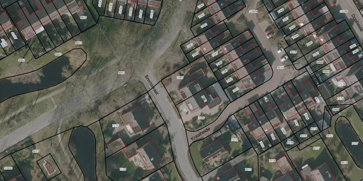 Gebruik de zoekbalk of klik op een perceel voor informatie over de adressen binnen dit perceel.