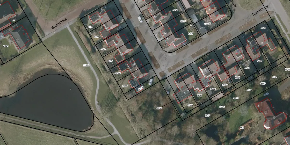 Gebruik de zoekbalk of klik op een perceel voor informatie over de adressen binnen dit perceel.