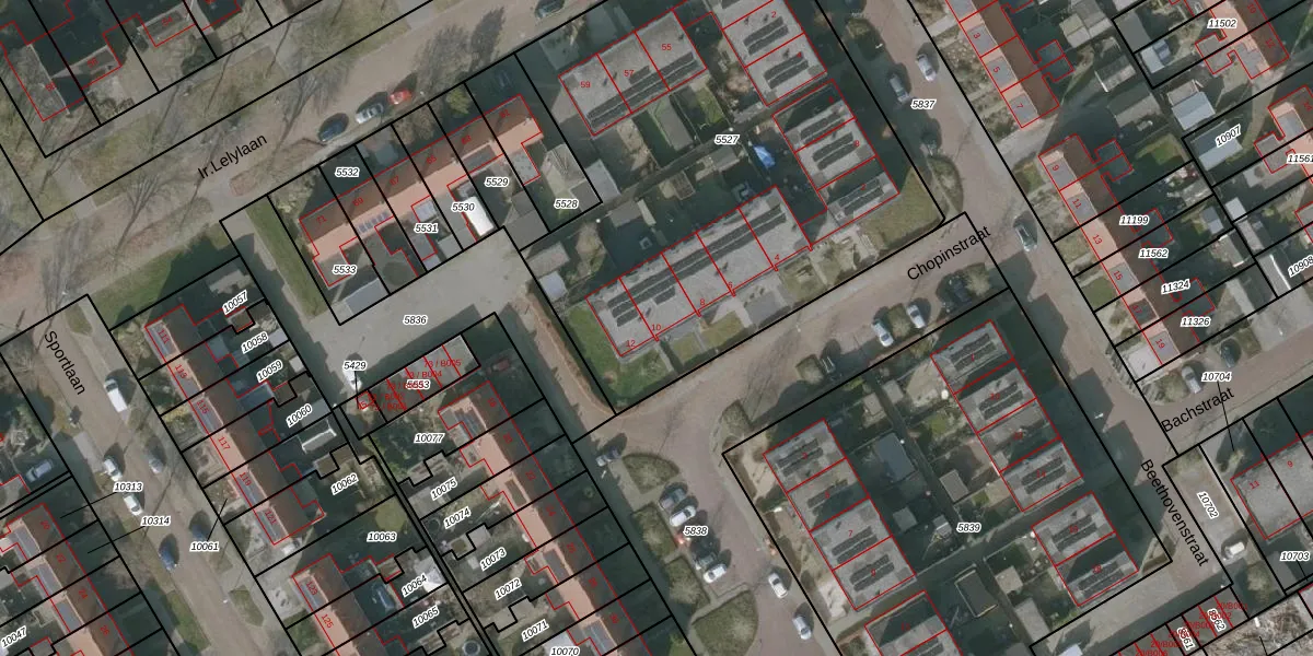 Het perceel waarop Chopinstraat 10 staat heeft een oppervlakte van 2854 m². Dit is een zeer groot perceel. De perceeloppervlakte wordt geregistreerd door het Kadaster. Gedetailleerde informatie over de maten van dit perceel kunt u vinden in het rapport Kadastrale kaart met maatvoering van Chopinstraat 10.