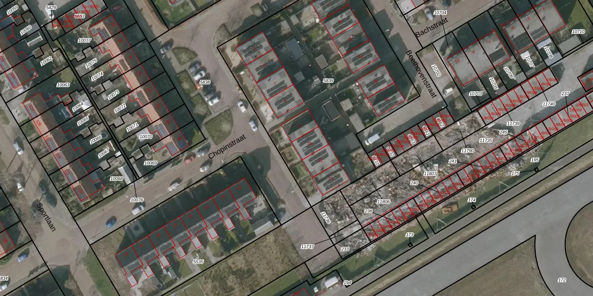 Het perceel waarop Chopinstraat 13 staat heeft een oppervlakte van 2810 m². Dit is een zeer groot perceel. De perceeloppervlakte wordt geregistreerd door het Kadaster. Gedetailleerde informatie over de maten van dit perceel kunt u vinden in het rapport Kadastrale kaart met maatvoering van Chopinstraat 13.