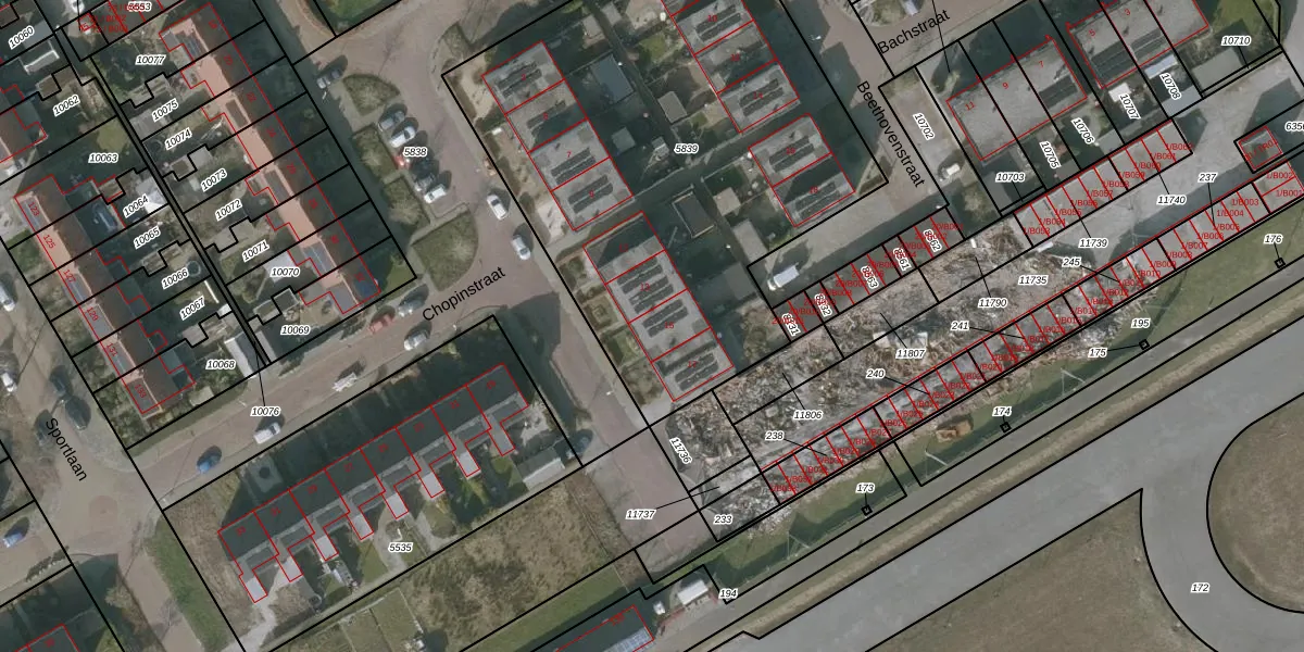 Het perceel waarop Chopinstraat 15 staat heeft een oppervlakte van 2810 m². Dit is een zeer groot perceel. De perceeloppervlakte wordt geregistreerd door het Kadaster. Gedetailleerde informatie over de maten van dit perceel kunt u vinden in het rapport Kadastrale kaart met maatvoering van Chopinstraat 15.