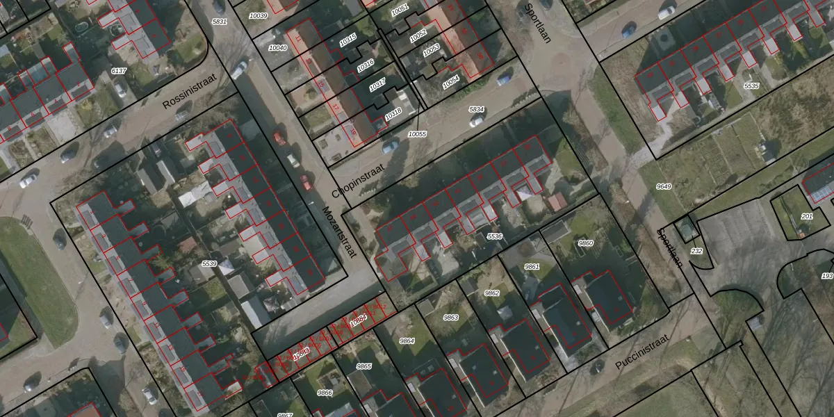 Het perceel waarop Chopinstraat 45 staat heeft een oppervlakte van 1508 m². Dit is een zeer groot perceel. De perceeloppervlakte wordt geregistreerd door het Kadaster. Gedetailleerde informatie over de maten van dit perceel kunt u vinden in het rapport Kadastrale kaart met maatvoering van Chopinstraat 45.