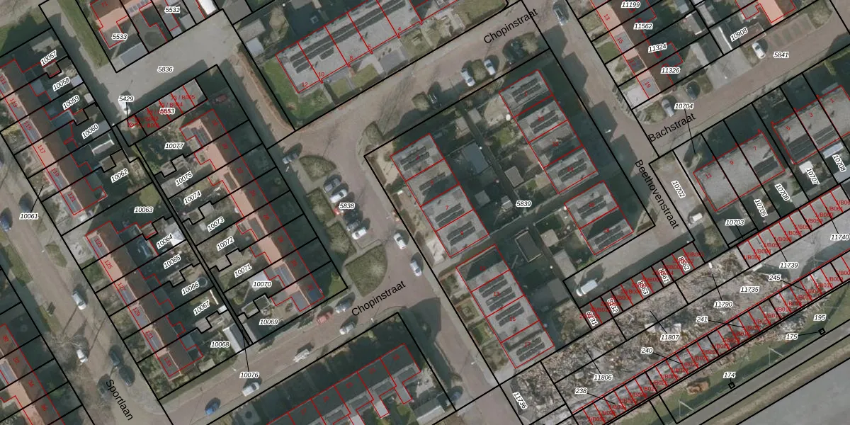 Het perceel waarop Chopinstraat 7 staat heeft een oppervlakte van 2810 m². Dit is een zeer groot perceel. De perceeloppervlakte wordt geregistreerd door het Kadaster. Gedetailleerde informatie over de maten van dit perceel kunt u vinden in het rapport Kadastrale kaart met maatvoering van Chopinstraat 7.