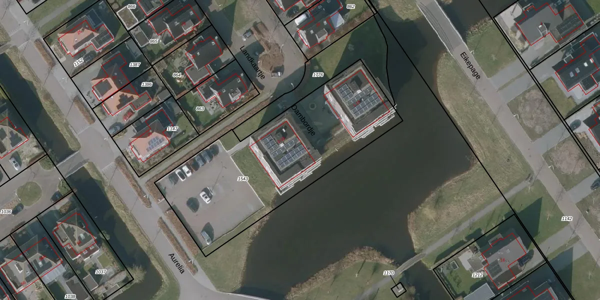 Het perceel waarop Dambordje 10 staat heeft een oppervlakte van 2154 m². Dit is een zeer groot perceel. De perceeloppervlakte wordt geregistreerd door het Kadaster. Gedetailleerde informatie over de maten van dit perceel kunt u vinden in het rapport Kadastrale kaart met maatvoering van Dambordje 10.