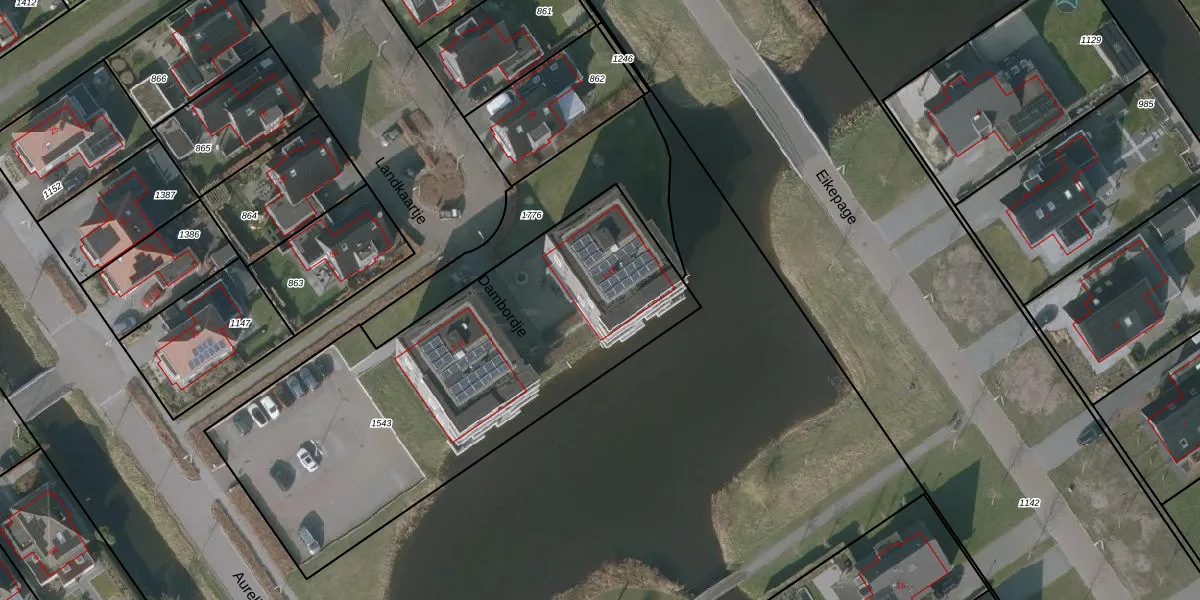 Het perceel waarop Dambordje 11 staat heeft een oppervlakte van 2154 m². Dit is een zeer groot perceel. De perceeloppervlakte wordt geregistreerd door het Kadaster. Gedetailleerde informatie over de maten van dit perceel kunt u vinden in het rapport Kadastrale kaart met maatvoering van Dambordje 11.