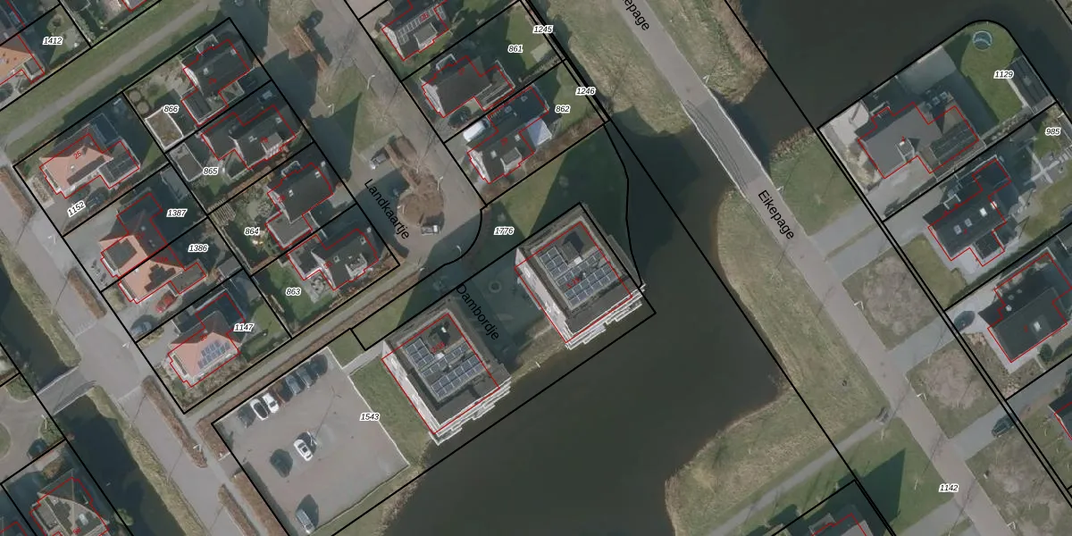 Het perceel waarop Dambordje 3 staat heeft een oppervlakte van 2154 m². Dit is een zeer groot perceel. De perceeloppervlakte wordt geregistreerd door het Kadaster. Gedetailleerde informatie over de maten van dit perceel kunt u vinden in het rapport Kadastrale kaart met maatvoering van Dambordje 3.