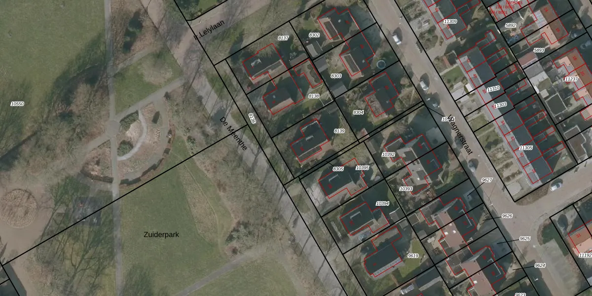 Gebruik de zoekbalk of klik op een perceel voor informatie over de adressen binnen dit perceel.