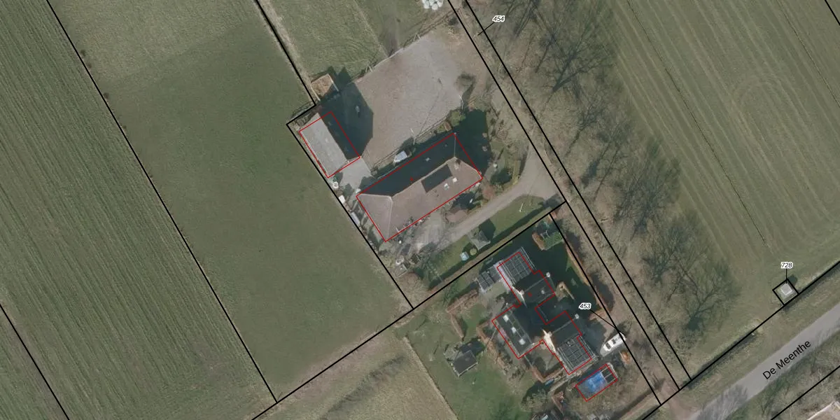 Het perceel waarop De Meenthe 4 staat heeft een oppervlakte van 7100 m². Dit is een zeer groot perceel. De perceeloppervlakte wordt geregistreerd door het Kadaster. Gedetailleerde informatie over de maten van dit perceel kunt u vinden in het rapport Kadastrale kaart met maatvoering van De Meenthe 4.