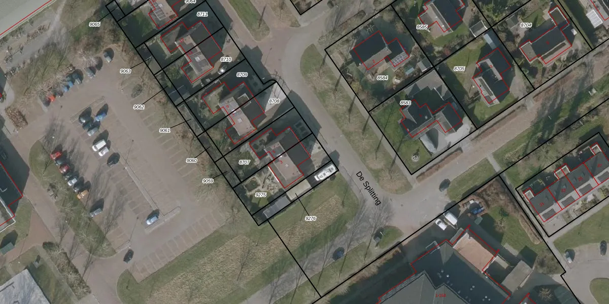 Het perceel waarop De Splitting 3 staat heeft een oppervlakte van 349 m². Dit is een groot perceel. De perceeloppervlakte wordt geregistreerd door het Kadaster. Gedetailleerde informatie over de maten van dit perceel kunt u vinden in het rapport Kadastrale kaart met maatvoering van De Splitting 3.