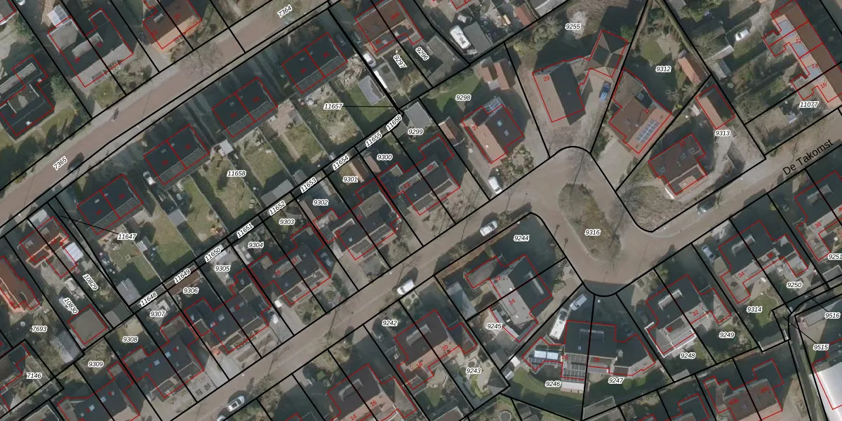 Het perceel waarop De Takomst 23 staat heeft een oppervlakte van 252 m². Dit is een middelgroot perceel. De perceeloppervlakte wordt geregistreerd door het Kadaster. Gedetailleerde informatie over de maten van dit perceel kunt u vinden in het rapport Kadastrale kaart met maatvoering van De Takomst 23.