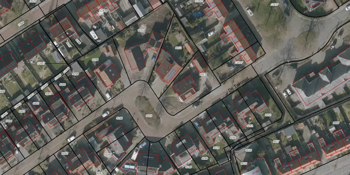 Het perceel waarop De Takomst 33 staat heeft een oppervlakte van 626 m². Dit is een groot perceel. De perceeloppervlakte wordt geregistreerd door het Kadaster. Gedetailleerde informatie over de maten van dit perceel kunt u vinden in het rapport Kadastrale kaart met maatvoering van De Takomst 33.