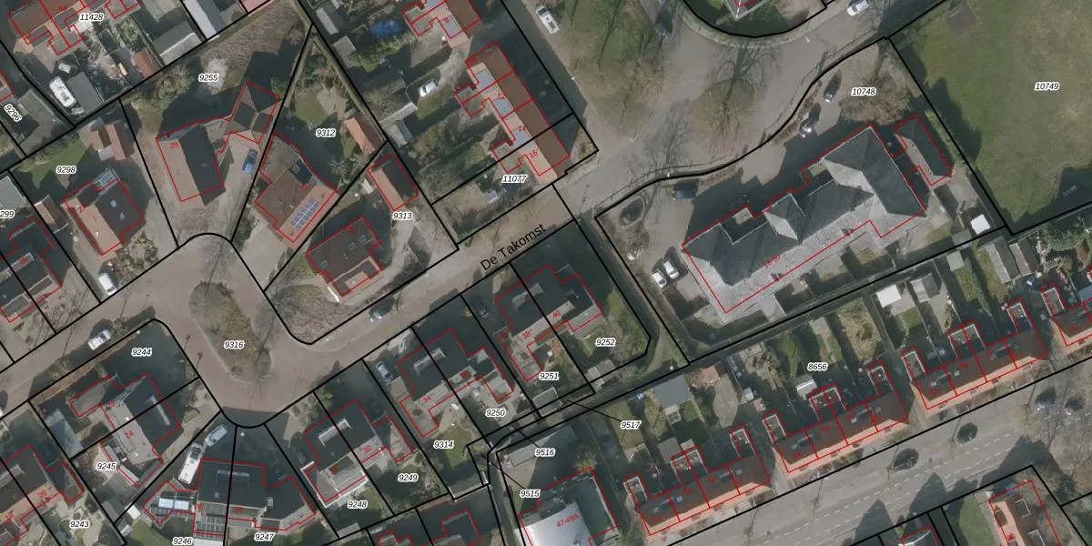 Het perceel waarop De Takomst 40 staat heeft een oppervlakte van 385 m². Dit is een groot perceel. De perceeloppervlakte wordt geregistreerd door het Kadaster. Gedetailleerde informatie over de maten van dit perceel kunt u vinden in het rapport Kadastrale kaart met maatvoering van De Takomst 40.