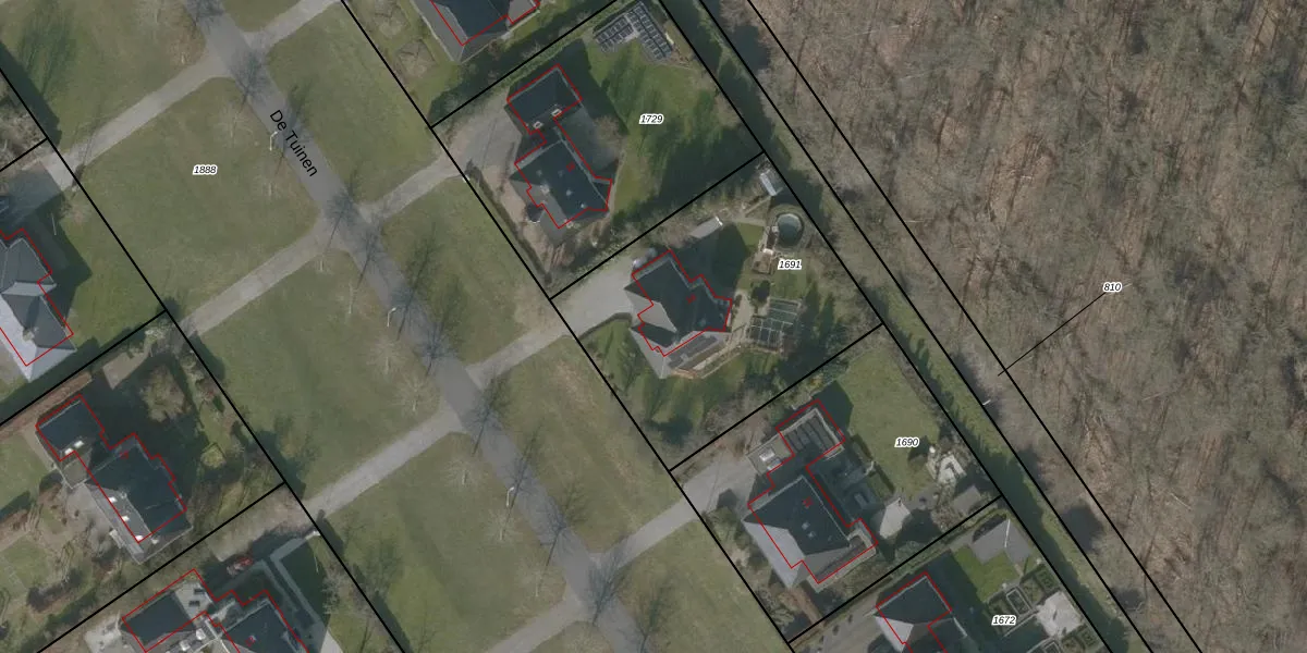 Het perceel waarop De Tuinen 14 staat heeft een oppervlakte van 1280 m². Dit is een zeer groot perceel. De perceeloppervlakte wordt geregistreerd door het Kadaster. Gedetailleerde informatie over de maten van dit perceel kunt u vinden in het rapport Kadastrale kaart met maatvoering van De Tuinen 14.