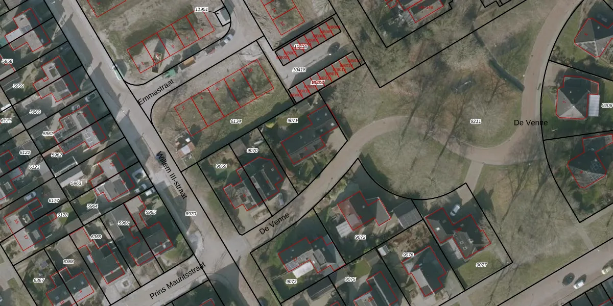 Gebruik de zoekbalk of klik op een perceel voor informatie over de adressen binnen dit perceel.