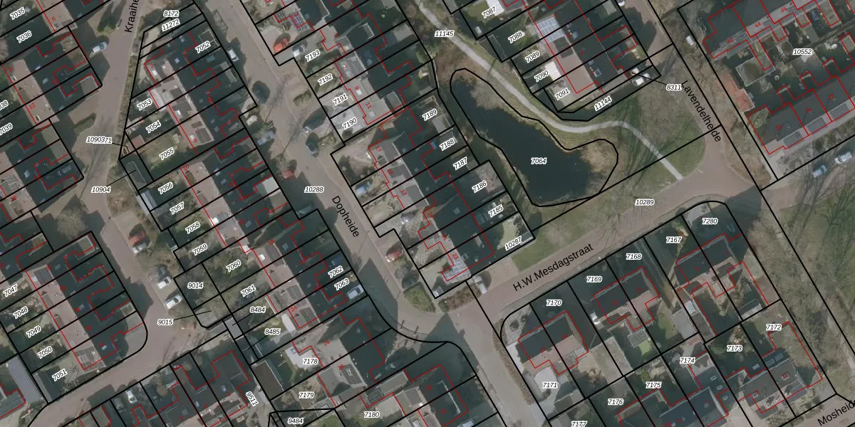 Gebruik de zoekbalk of klik op een perceel voor informatie over de adressen binnen dit perceel.