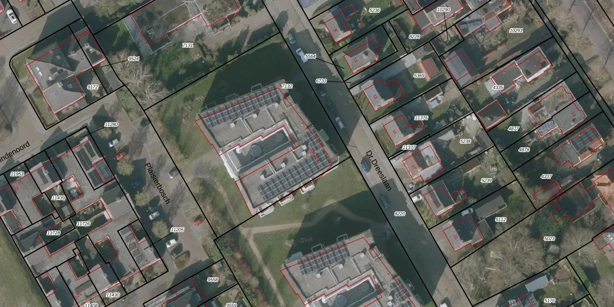Het perceel waarop Dr.Dreeslaan 22-S staat heeft een oppervlakte van 2407 m². Dit is een zeer groot perceel. De perceeloppervlakte wordt geregistreerd door het Kadaster. Gedetailleerde informatie over de maten van dit perceel kunt u vinden in het rapport Kadastrale kaart met maatvoering van Dr.Dreeslaan 22-S.