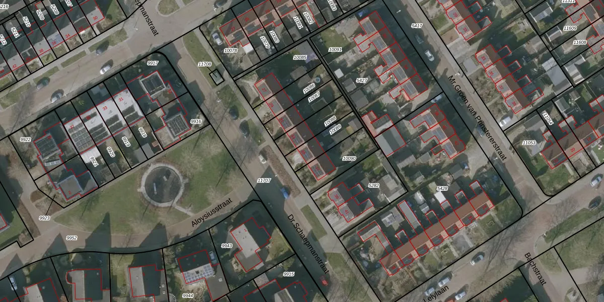 Gebruik de zoekbalk of klik op een perceel voor informatie over de adressen binnen dit perceel.