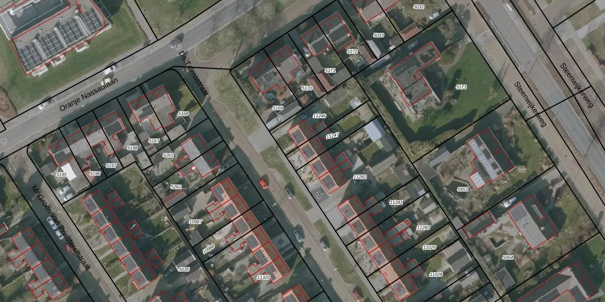 Gebruik de zoekbalk of klik op een perceel voor informatie over de adressen binnen dit perceel.