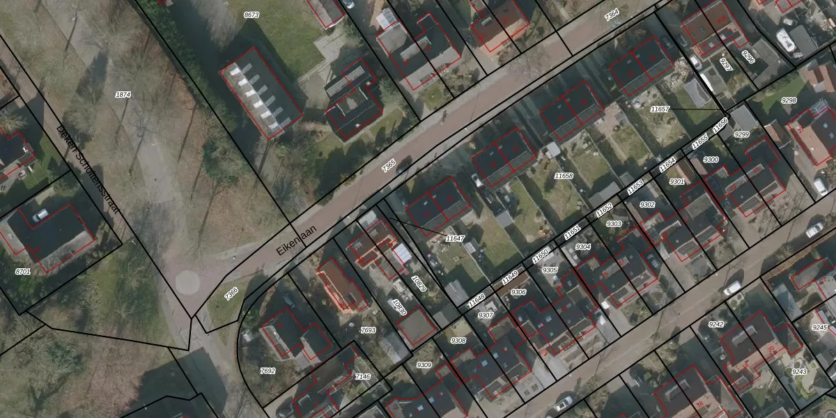 Eikenlaan 16 is gelegen op kadastraal perceel WVG00D11658. Deze kadastrale aanduiding is uniek en wordt gebruikt door het Kadaster om eigendomsrechten en andere zakelijke rechten vast te leggen. Het perceel maakt onderdeel uit van de kadastrale gemeente Wolvega.