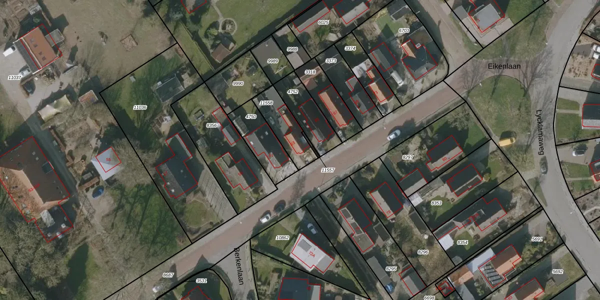 Gebruik de zoekbalk of klik op een perceel voor informatie over de adressen binnen dit perceel.